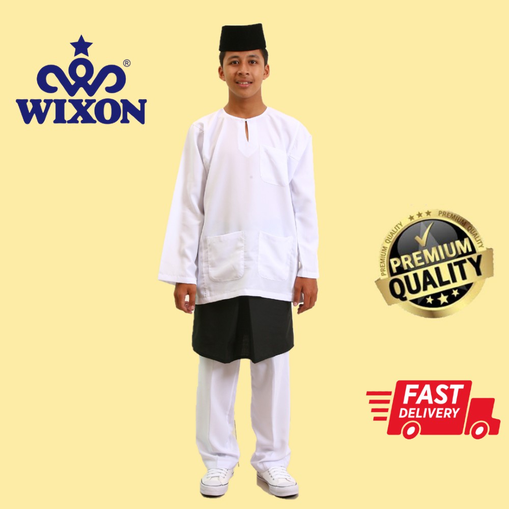Baju Melayu Putih Pakaian Sekolah Agama Kain Licin Koshibo Set Lazada